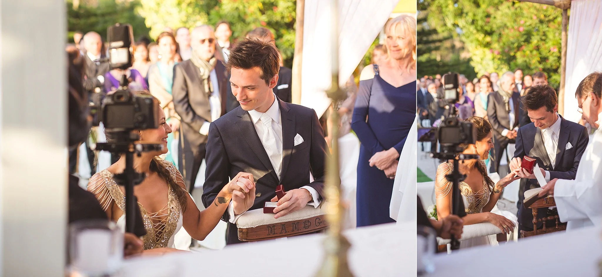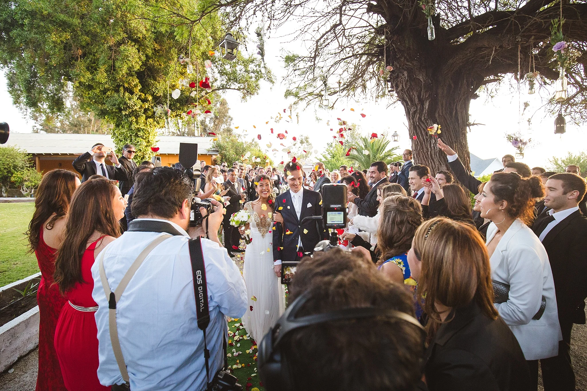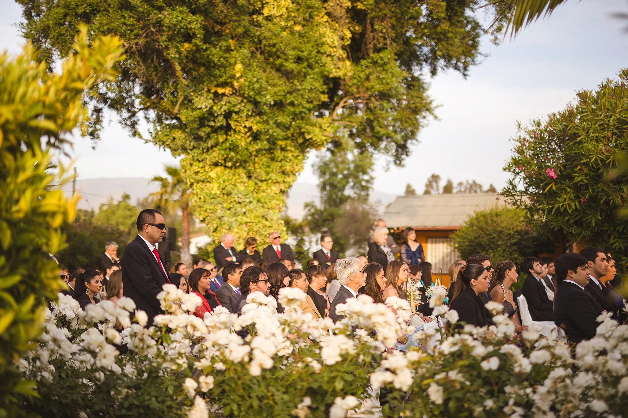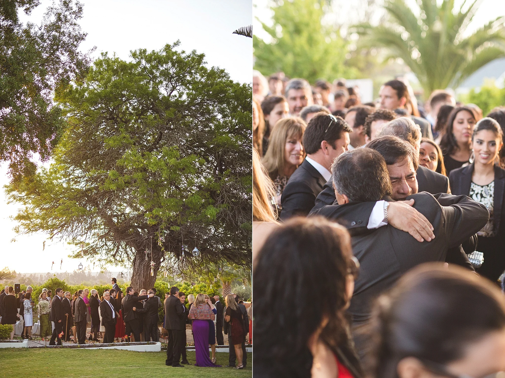 After the ceremony, everybody was congratulating the newlyweds. People were hugging, smiling, kissing, all during the sunset and below the beautifully decorated tree. :)