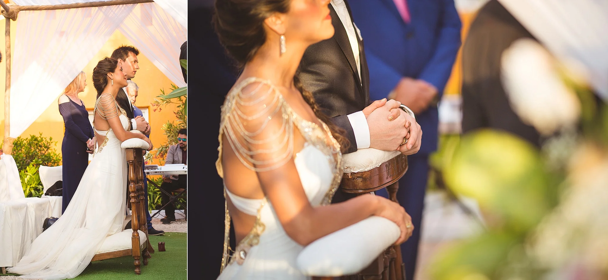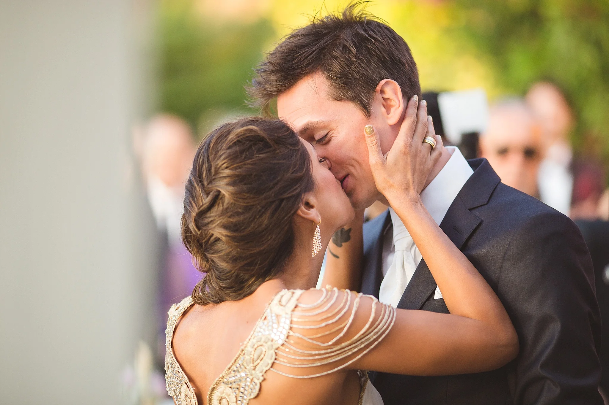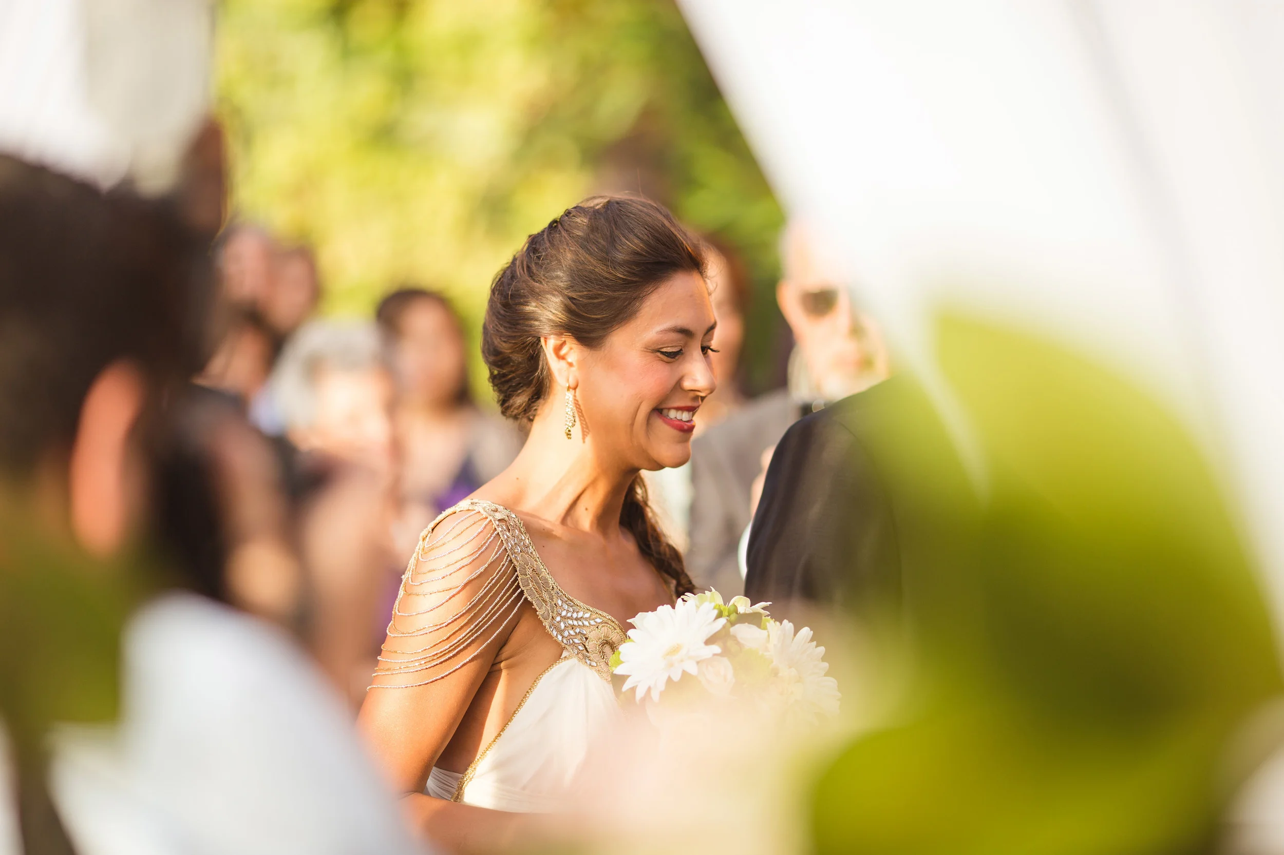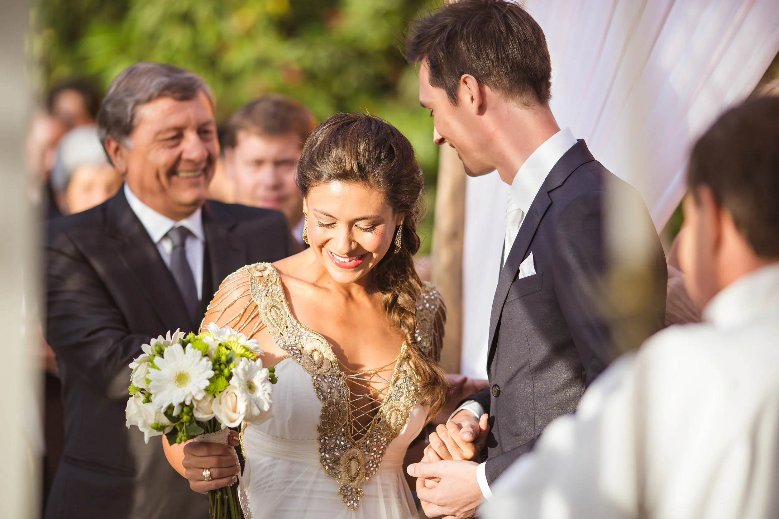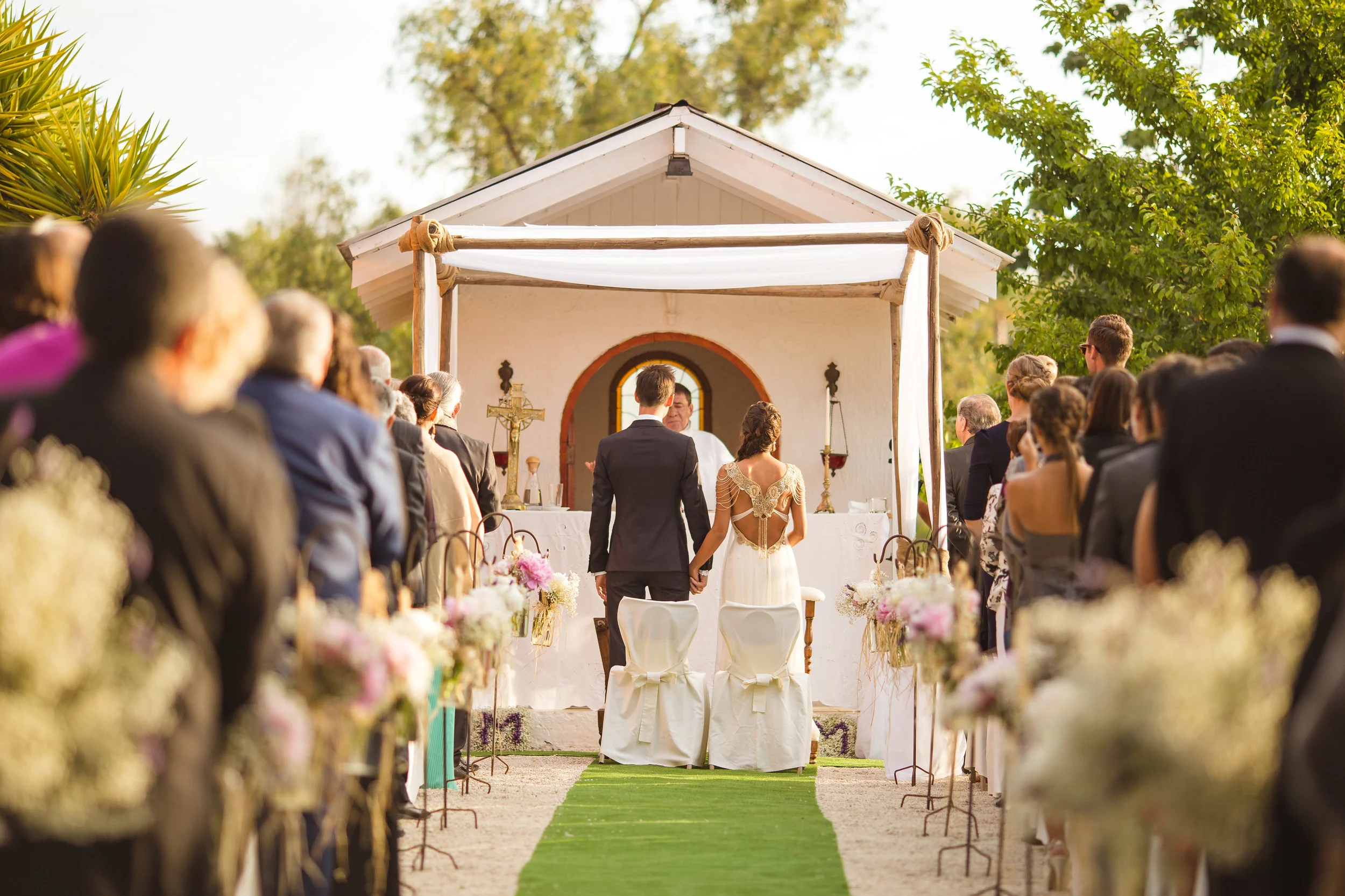After the ceremony, everybody was congratulating the newlyweds. People were hugging, smiling, kissing, all during the sunset and below the beautifully decorated tree. :)