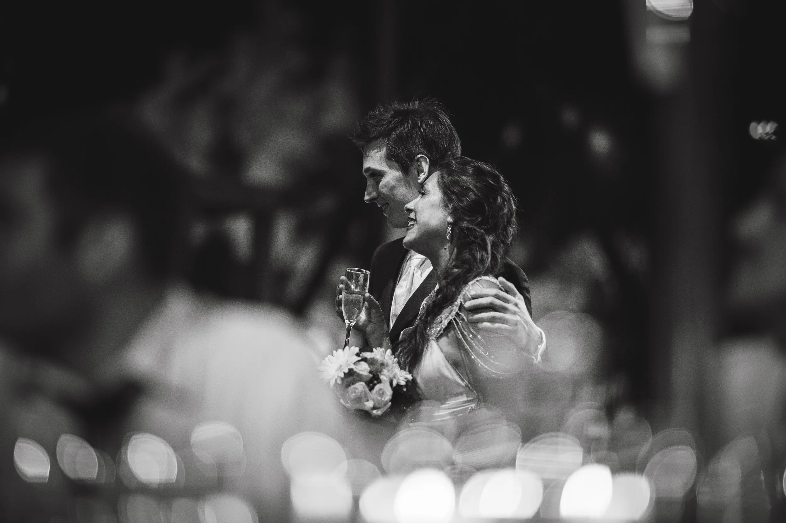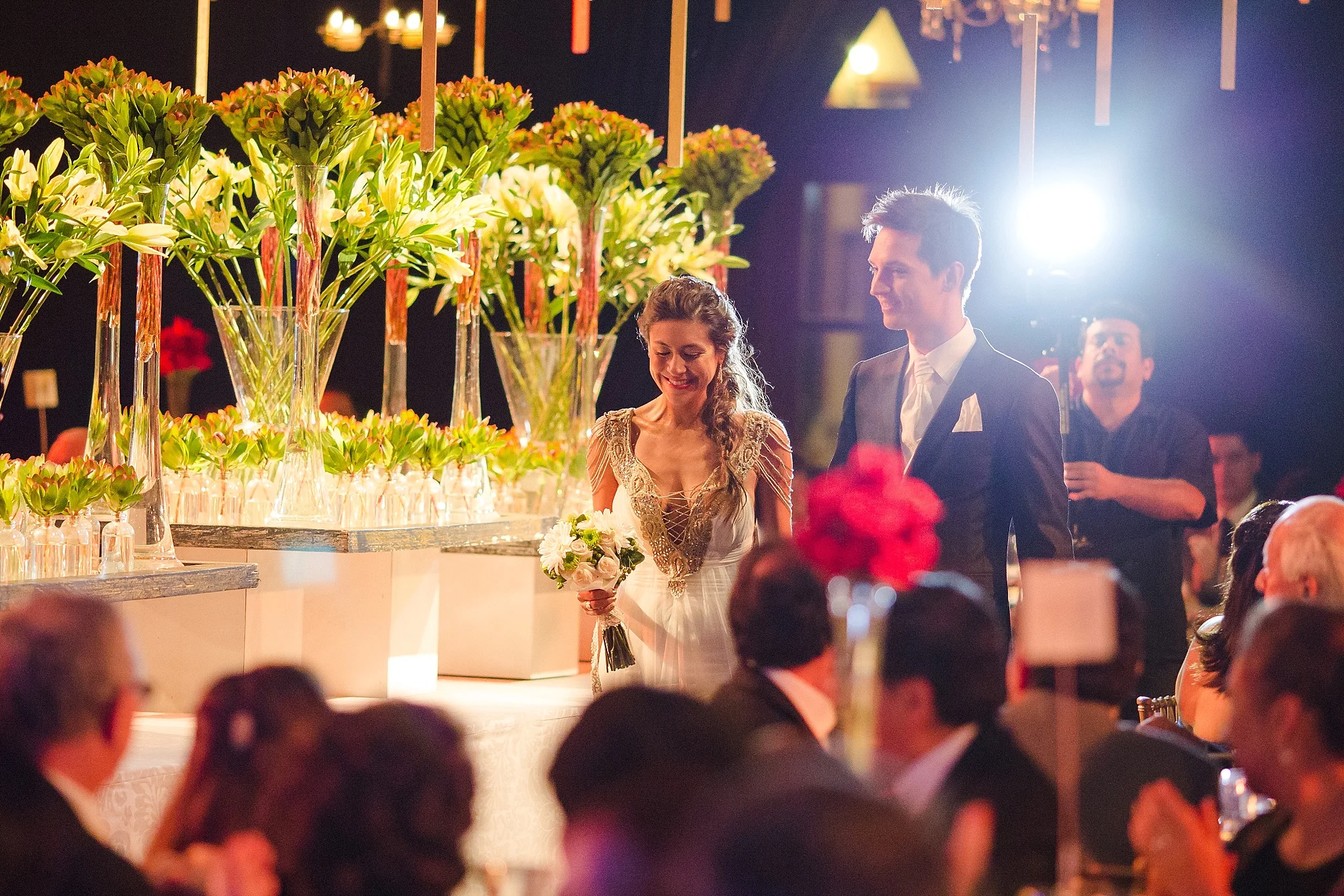 The reception was only a short walk away, in a big, somewhat not that interesting building from the outside. But what was inside - we just stopped and stared in awe. Inside, there were dozens of chandeliers, tens or maybe even hundreds of gold decorations hanging from the roof and bouquets of roses on the main table.