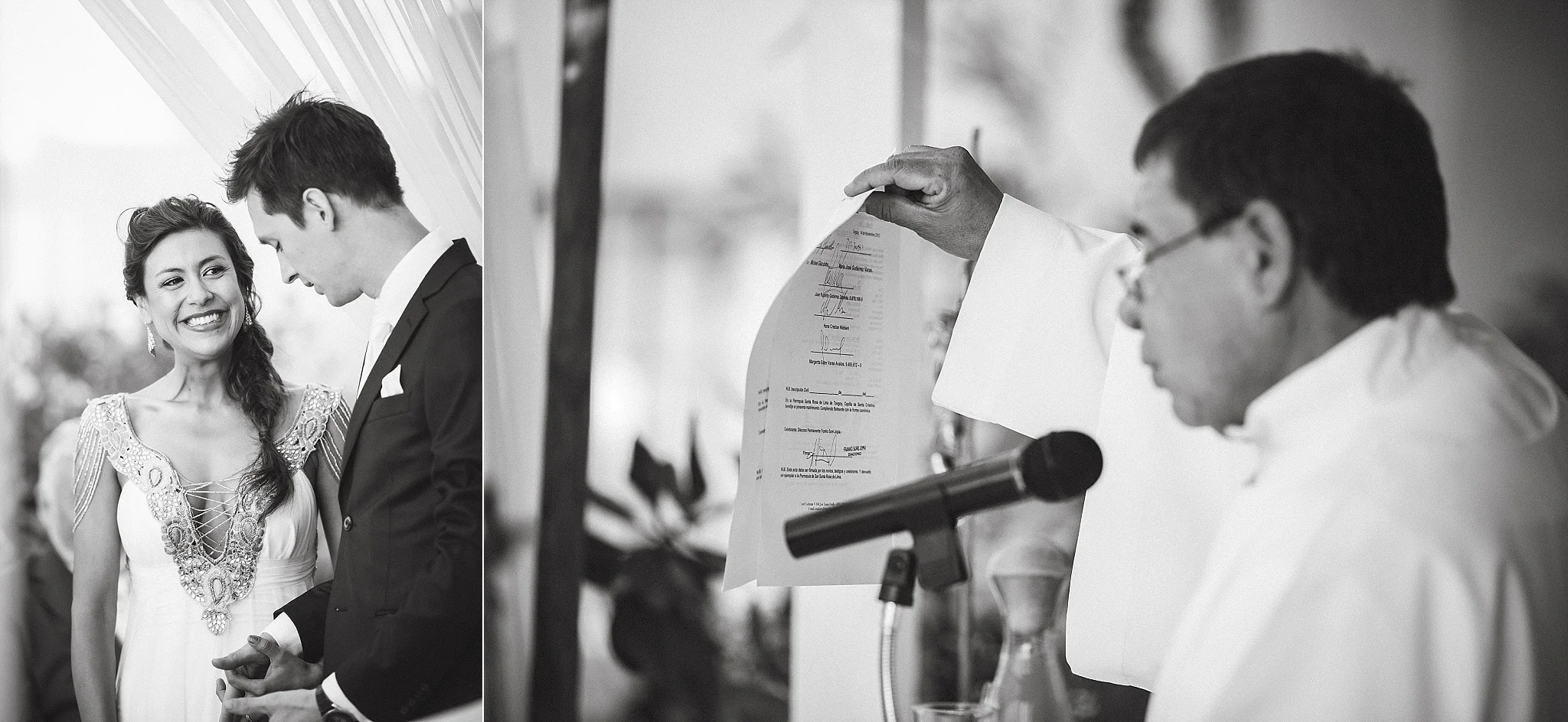 The priest showing to all guests the most importing document, the one confirming their marriage.